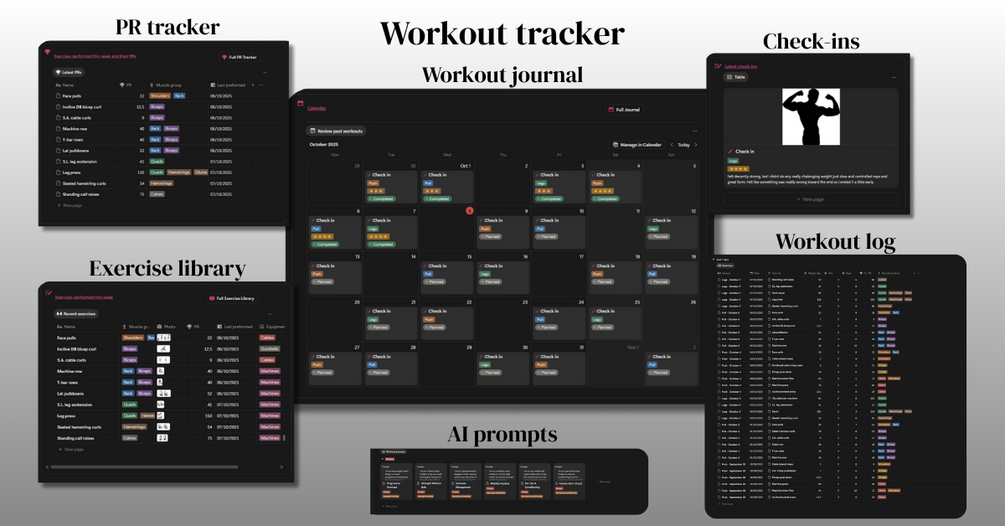 FitOS is an all-in-one Notion system that helps you plan, track, and stay consistent with your training β so you can build strength, form habits, and actually see your progress.