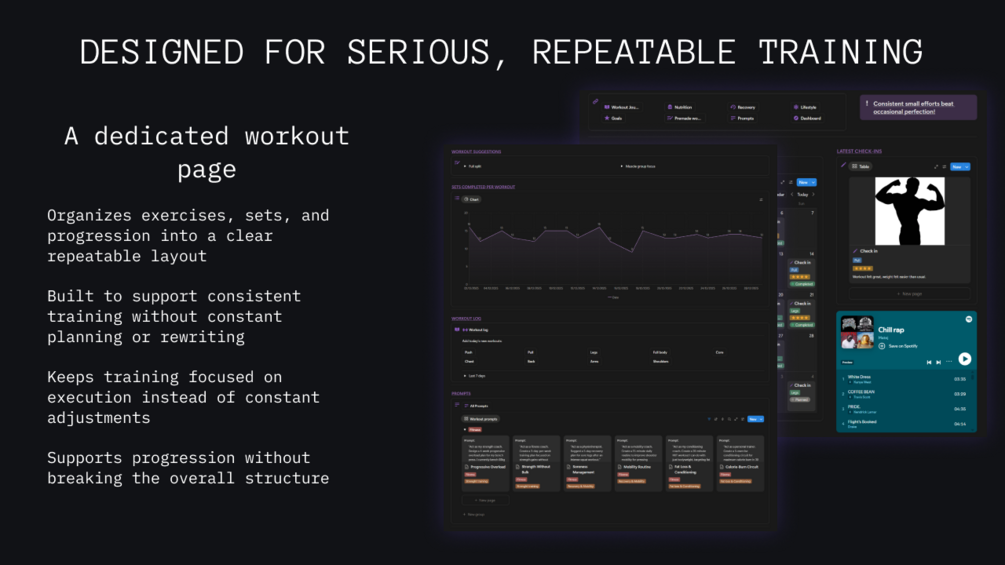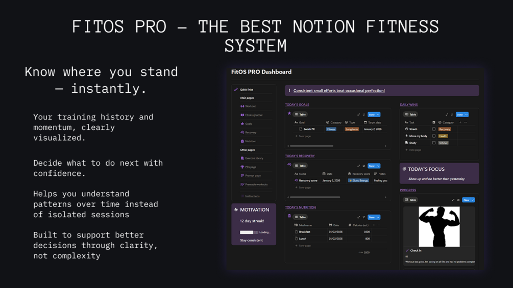 Anyone who wants a minimal, well-designed workout system in Notion that doesn't feel overwhelming and doesn't slow you down. If you value structure but don't want a full lifestyle setup, this is the cleanest version of FitOS you can use.